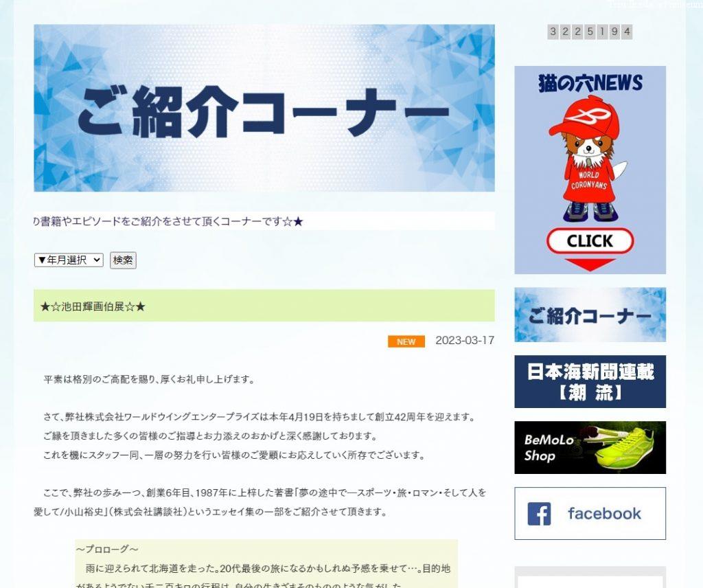 株式会社ワールドウィングエンタープライズ様のホームページで浅間展を紹介していただきました。