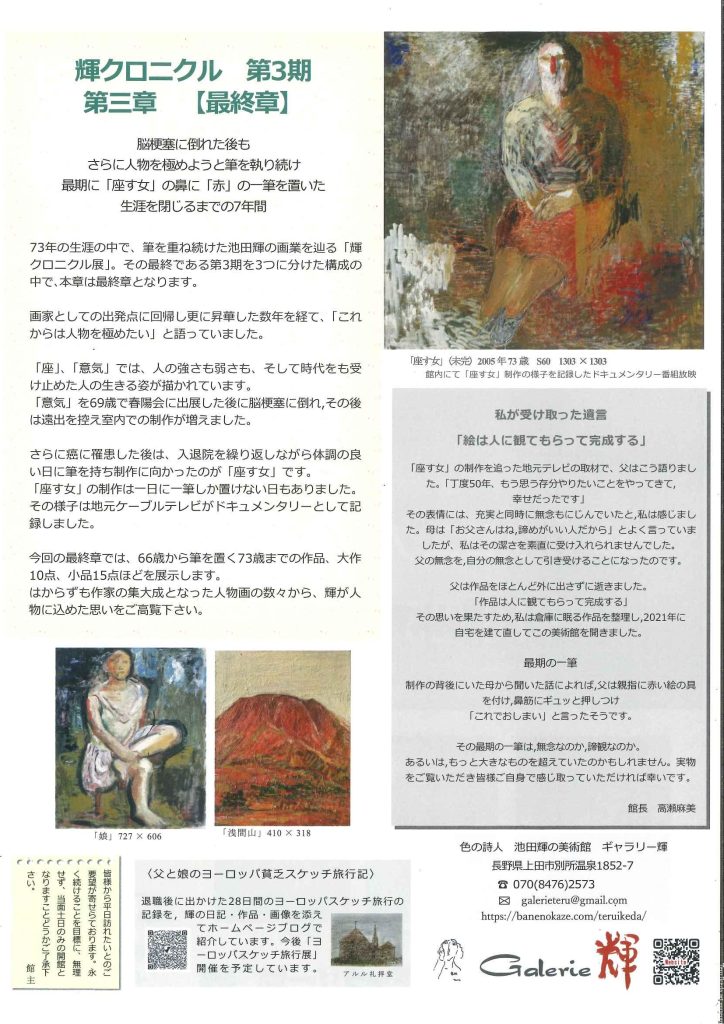 画家・池田輝の紹介、ギャラリー輝を開館した思い、そして今回の展示の様子をご覧頂けます。(11月27日までご視聴いただけます。)